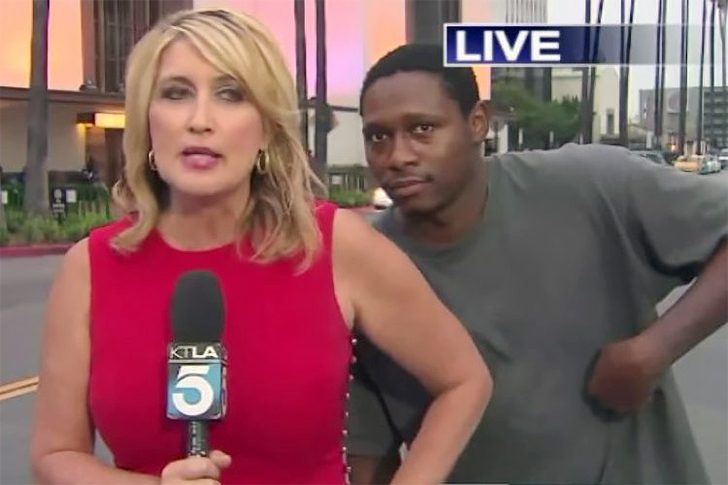 Emmy-award-winning reporter Wendy Burch was peacefully filming a news segment in the streets of Los Angeles, California when she was surprised by a passerby. She got startled when a man suddenly entered the frame and let out a scream followed by a laugh of relief after she turned around.