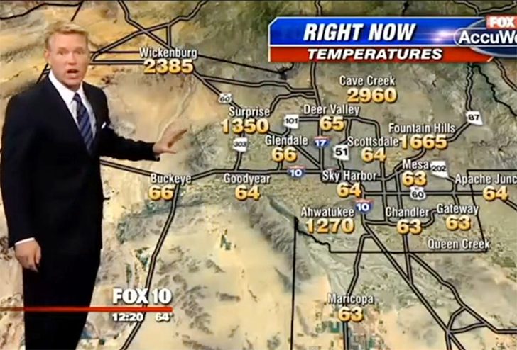 Fox 10 weatherman Cory McCloskey played it cool despite the unbelievably hot temperatures flashing on-screen. He jokingly advised local residents to go out while they still could to make light of the technical mishap. Viewers found it hilarious too, and Fox 10 later admitted the technical glitch on their part.
