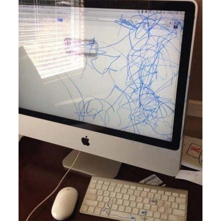 Si tienen un incipiente artista en sus casas, solo deben esperar pacientemente a que los pequeños superen la popular fase de garabatear. Los infantes pueden transformar absolutamente todo en un lienzo, incluyendo paredes, sofás y también sus preciadas iMac.