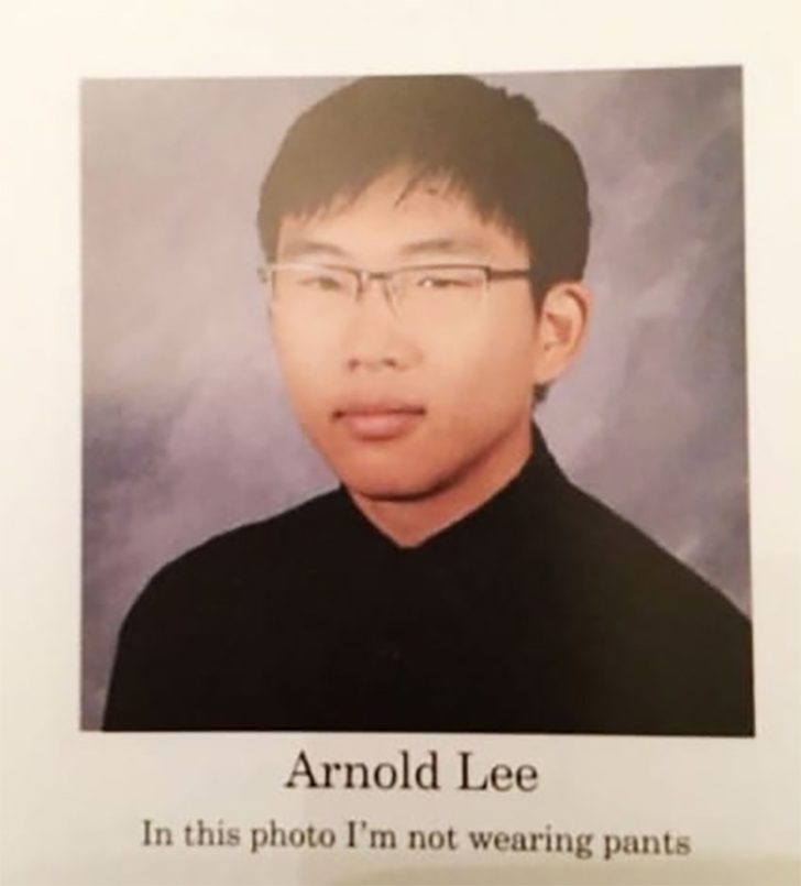 If you read Arnold Lee’s yearbook quote, you may feel irritated or let out a quick chuckle, depending on your sense of humor. We must admit, he’s a brave lad to have written that. The question is, how credible is his claim? In any case, which school would let their students take a photo without pants for their yearbook?