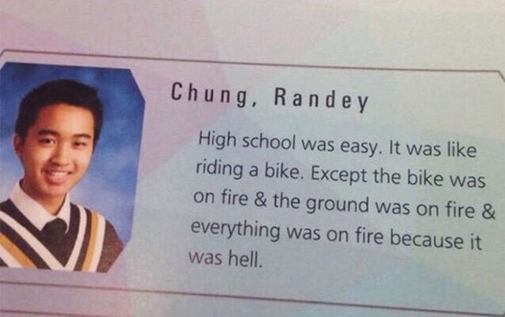 We have to say it; Randey should get a plaque or a statue of himself for such a well-written yearbook quote. We mean, even Homer, the Greek epic poet, wasn’t that good with words. By the way, Homer was considered one of the greatest authors of all time.