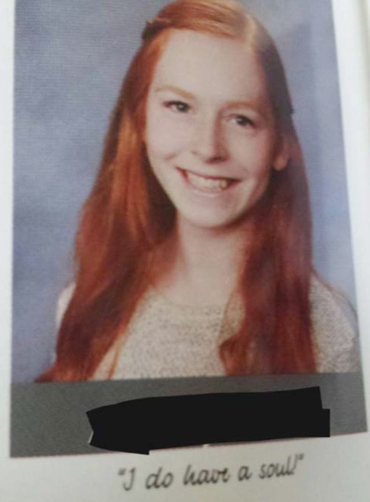 In school, you are either in a class of people telling jokes or those burned by them. This girl seems to have been burned more than enough times. To put her tormentors to shame, she used her yearbook space to express the truth. She has a soul just like the rest of us, and it needs to be respected.